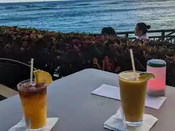 You can choose to sit at the bar counter inside the restaurant or on the terrace where you can see the ocean of Waikiki🏖️