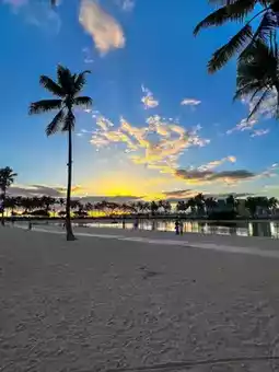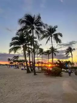 For the sunset in Waikiki around Golden Week, I recommend the area around Hilton Hawaiian Village