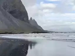 Vestrahorn, located in southeastern Iceland near the town of Höfn, is one of Iceland's most iconic mountains, renowned for its stunning jagged peaks and surrounding black sand beaches. At high tide, the water creates stunning reflections, offering breathtaking photo opportunities.