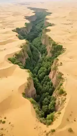 One of China’s rarest and best-preserved primeval forest canyons in sandy terrain,