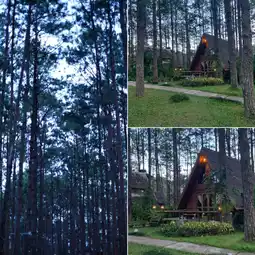 Very good atmosphere, good air, sleeping in a wooden house in the middle of a pine forest, really suitable for relaxation. There are many types of wooden houses to choose from. They are quite old but still in good condition. The interior is clean, compact, and very cute.
