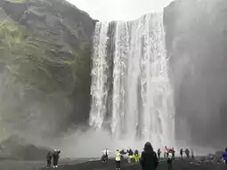 - **Skógafoss**: A 60-meter-high waterfall with a colorful rainbow under the sun, like a dream!