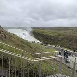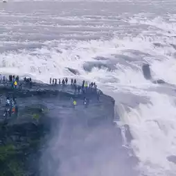 • 🌊 Two-tiered Cascades — The water drops 32 meters in two stages into the Hvítá River canyon.