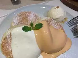 🍰 Thai soufflé: freshly made soufflé with Thai milk sauce, super happy with ice cream!