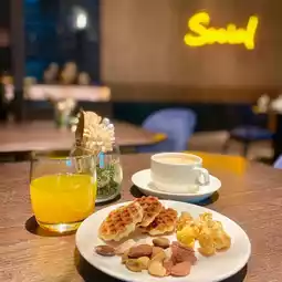 The Ipso Hotel Hsinchu is a very stylish hotel, especially the Executive Lounge, SOCIAL. The wood-themed space is accented with green plants and eye-catching royal blue velvet sofas. This space alone is perfect for taking photos.
