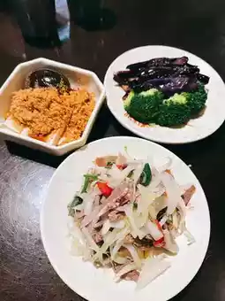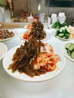 There are plenty of side dish options, and they all look good. I picked three plates, and my favorite was the onion dish. It had a nice crunch, a hint of spiciness, and a fragrant onion aroma—really enjoyable.