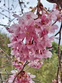 On a spring morning, I traveled along the winding mountain road to Smangus in Hsinchu, a village hidden among the mountains. At this moment, the village is transformed into a pink fairyland by the cherry blossoms covering the hills. A gentle breeze blows as I stroll along the mountain paths, where pale pink Yoshino cherry blossoms and deep red mountain cherry blossoms bloom in a beautiful contrast. Against the backdrop of the blue sky and mist, the scene is even more serene and dreamlike. As I walk, the cherry blossoms dance lightly in the wind, their petals slowly falling to form a soft pink carpet, making every step poetic. The distant sound of a babbling brook and the chirping of birds in the forest create a symphony of spring. Travelers stop to admire the view, some chatting softly, others quietly soaking in the spirit of the mountains. I reach the observation deck and gaze at the layers of cherry blossoms among the mountains, with white clouds occasionally drifting over the peaks, like a moving painting. In the afternoon, the mist begins to rise, and the sea of pale pink flowers appears and disappears in the fog, creating an ethereal and dreamlike scene. The sunset casts a warm golden glow on the cherry blossoms. I stand there for a long time, deeply imprinting this cherry blossom paradise, far from the hustle and bustle, in my heart, filled with the tranquility and emotion of spring.