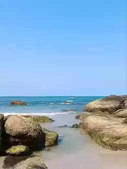 2. Khao Takiab Beach, this beach is located in the southernmost part of Hua Hin. The beach is over 20 kilometers long and has a mountain as its center. The coastline is rugged and rocky. Khao Takiab Beach is home to a temple that locals and tourists come to pay homage to. In addition to the temple, there are also groups of macaques that like to come out to eat crabs on the beach and show up for tourists to see their cuteness and way of life. There are also many restaurants open for service.