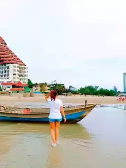 1. Hua Hin Beach, a white beach stretching over 4 kilometers from the city center to Khao Takiab. The sand here is clean and white, not as crowded as the beaches in Pattaya. There are beach activities to choose from, such as horseback riding, sitting on canvas chairs to enjoy the view, and swimming to cool off.