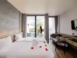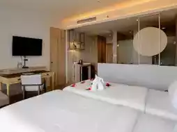 This trip, Aom would like to take everyone to relax and chill. The accommodation is quiet, good atmosphere, private, perfect for relaxation. The hotel is located in the Khao Takiab area. It has complete facilities such as a large swimming pool, fitness center, spa, poolside bar, kids club, restaurant, cafe.