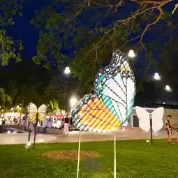 💫 Cicada Market is a unique night market located in a beautiful garden in Hua Hin. It stands out for its artistic and creative atmosphere. There are many handmade products, artworks and handmade products to choose from. There are also a variety of food and drinks to try, including live music that creates an impressive atmosphere. It is suitable for a relaxing evening stroll with family, friends or lovers.