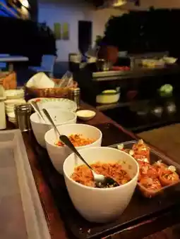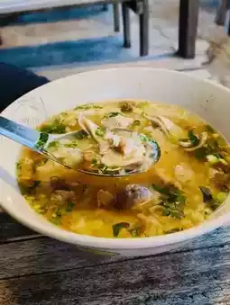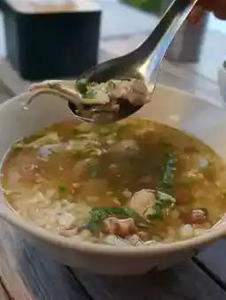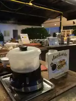 🐷 Khao Tom Ban Pong, Hua Hin is a popular restaurant among tourists and locals. With a variety of rice porridge and dry rice menus, it is packed with ingredients and has a well-rounded taste, especially the pork offal, which is well-made, such as stewed pork ribs, pork stomach, or bak-teng. There are also other menus such as Kao Lao and Tom Yum noodles to choose from. The shop is conveniently located, the atmosphere is clean and inviting, and the price is not expensive. It is suitable for a delicious and worthwhile dinner.