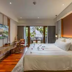 🌴 The first step we took, we felt the tranquility inside the low pavilion building decorated in ancient Thai style, lined up in the middle of a garden area full of lawns and trees. There are lotus ponds along the walkway. The sound of leaves swaying in the wind. Everything made us feel like we had traveled back in time to an era when life was simple and close to nature. Especially when we lay down on the daybed by the pool, with a pool bar in the middle serving cold drinks, we felt like we were mesmerized and forgot the chaos of the city.