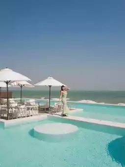 The most eye-catching thing about the hotel is the infinity pool and beach club