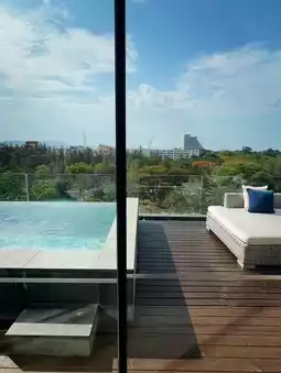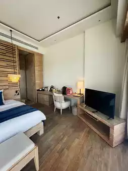Cape Nidhra Hua Hin is a small hotel located on Hua Hin beach. Every room has a private pool. The room we stayed in had a garden view, which was very refreshing and pleasant. The pool villa is of a decent size, perfect for couples. The room is very spacious, the bed is soft and comfortable, and there is a large bathtub that even tall people can comfortably soak in. The room is fully equipped with amenities, and the staff provides excellent service, as expected from a 5-star hotel. The breakfast is generally good, though some items may not suit everyone's taste, but it's not a big issue. You can walk from the hotel to Hua Hin beach. For dinner, you can dine at the hotel while enjoying the sea view from the restaurant. It's a relaxing experience and a great option for accommodation in Hua Hin, especially for couples.