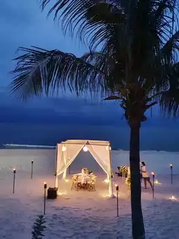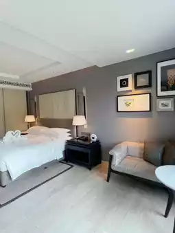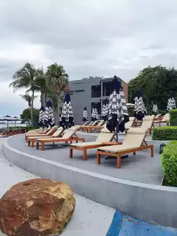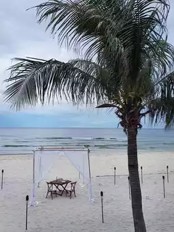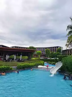 Had the opportunity to celebrate our anniversary at the Marriott Hua Hin hotel. I must say I was impressed from the moment I stepped into the hotel. All the staff have a great service mind. Starting with a welcome drink, the staff showed us to our room. We requested an anniversary celebration, and they arranged it as requested. My partner was beaming with joy. The room was fully equipped with amenities. Looking out from the balcony, we could see the pool and the lush green garden, which was very relaxing. The beachfront area was also nice, providing a peaceful atmosphere. However, on weekends, there might be a lot of kids, so it could get a bit noisy. The pool here is very inviting, and kids would love it. They even offer free popsicles. We had dinner at the hotel's restaurant, which was delicious and very romantic.