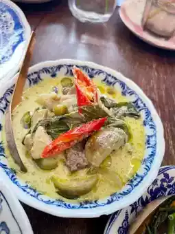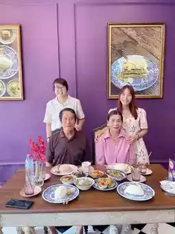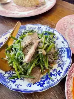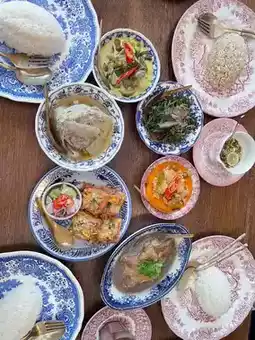 Mata Pita Canteen is located on Naeb Kehardt Road, Hua Hin Soi 51. The restaurant stands out with its striking purple color. Inside, the decor is beautiful. The menu focuses on Thai-style curry rice and also offers desserts, all served in uniquely beautiful dishes. We came here for breakfast with the family and chose a variety of dishes. Prices start at 40 baht, and the portions are not very large, so you can order several dishes to try different things. Our favorites were the pork toast, stir-fried chives with liver, and green curry. Overall, everything was delicious. The owner, who is very friendly and pleasant to talk to, made the experience even better. We will definitely come back again.
