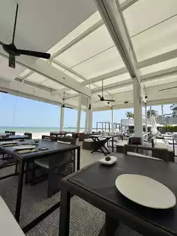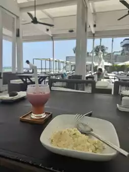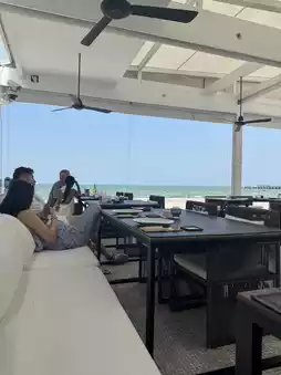 Oceanside Beach Club and Restaurant is a charming cafe and beach club with a clean white tone that contrasts beautifully with the blue sea view, creating a relaxing and refreshing atmosphere. The cafe is designed to be airy and breezy, ensuring comfort even without air conditioning. There’s a swimming pool nearby, and the menu offers a wide variety of food and drinks, including both Thai and international cuisine. The cafe is stunning, with photo-worthy spots everywhere, perfect for catching the light and breeze. The staff provides excellent service. If you're visiting Hua Hin and looking for a picturesque cafe to take photos, create content, or simply unwind, this place ticks all the boxes. Great food, drinks, views, lighting, and breeze.