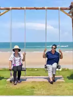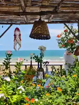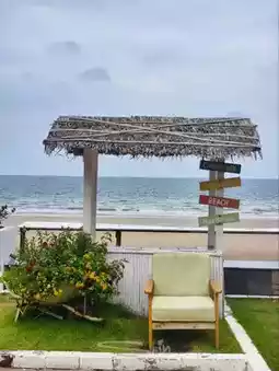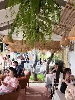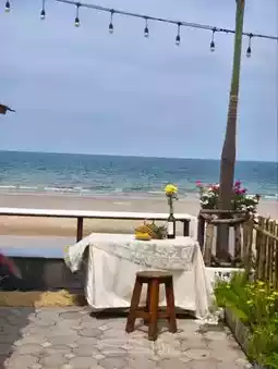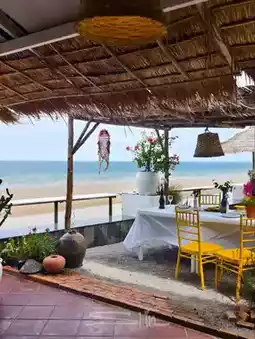 A beautiful cafe by the beach. If you have the chance to visit Hua Hin, a beautiful city by the sea, you must not miss this shop. The atmosphere is shady, simple, but with a hidden comfort. It is a cafe that has both delicious food, drinks, and desserts. Most importantly, the price is not expensive. There are many beautiful corners for taking pictures. The shop is open-air, so you can enjoy the breeze and the view. There are many seating areas. If you go, I recommend trying the desserts. They are good. And if you are afraid of driving far, next to the cafe, there is a hotel with a beautiful seaside swimming pool. I recommend going on weekdays so there will be fewer people.