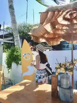The atmosphere of the shop is full of freshness from the sea breeze and the sound of waves hitting the shore. 🌊🏄🏼 The decoration is simple but warm, matching the beach area.