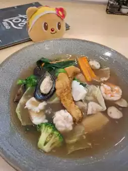 The seafood Rad Na is delicious, the shop's signature dish. It uses good ingredients, the shrimp is very fresh and bouncy, the fried fish is also good, the soup tastes good. It is a menu that I intended to drive to eat. A plate costs 150 baht but feels very worthwhile.