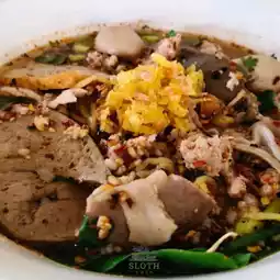 🍝 Ancient recipe pork noodles, Tom Yum with morning glory, Hua Hin is a shop selling Tom Yum noodles with a spicy and old-fashioned flavor. The highlight is the well-rounded Tom Yum soup, sour, spicy, salty, sweet, and perfectly balanced. The minced pork and offal are clean and have no fishy smell. The noodles are chewy and soft. The highlight is the freshly fried pork rinds, crispy and delicious, which you can order more. Anyone who likes Tom Yum noodles with a rich and satisfying flavor should not miss this shop when visiting Hua Hin.