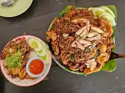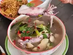 Super basil tray By.ChefTon drove from Bangkok for this. After eating, I went back to eat Super basil tray by.Chef Ton Soi HuaHin88. I can tell you that I was full. With a plate of basil for 350 baht, I have to say that there is a bigger size for 450 baht. I had to wrap it up because I couldn't finish it. The seafood tom yum was very delicious, sour and spicy with basil leaves. I really liked it. The squid with garlic eggs was also good because the ingredients were fresh and delicious. But you have to wait a long time because the chef is the only one making it. Plus, there are a lot of orders. The people waiting have to be patient. The atmosphere in the shop is like a normal made-to-order restaurant. The owner is polite and gives good advice. He is talkative and friendly. Overall, the price and the amount are not expensive.