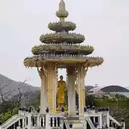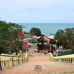 🏞 Wat Khao Takiab is a temple located on a hilltop in the southern part of Hua Hin. The highlight is the large golden Buddha statue facing the sea, making it a spot where you can see the beautiful scenery of Hua Hin Beach. There are also groups of macaques living in the temple area, which is another attraction for tourists to visit and feed. If you walk up to the temple, you will experience a peaceful atmosphere and cool sea breezes, suitable for worship and relaxation.
