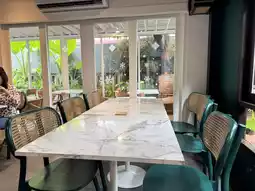 Sook Sook Pochana is a homey Thai restaurant located in the heart of Hua Hin. It stands out with its contemporary white house decoration, surrounded by the shade of large trees. The atmosphere is warm like eating at a friend's house. There are both air-conditioned and outdoor areas where pets are allowed.