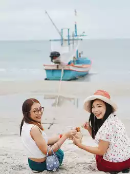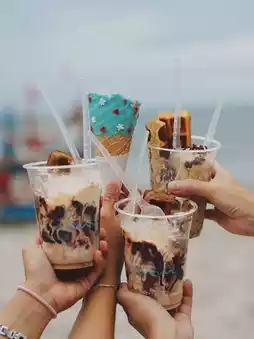 #Travel to save the world Come to visit Hua Hin. Stop by Skoop beach huahin shop located in Khao Takiab area, at the end of Hua Hin beach. This place is famous for ice cream. There are many flavors to choose from and there are many corners to take pictures. It will definitely please girls. We chose to sit outside on the beach of Hua Hin. Let your feet touch the sand and feel the cool sea breeze. It feels very relaxing. The ice cream tastes delicious. There are both cones and cups. It is a good way to cool down and add sweetness. The shop is open every day from 9.00 - 18.00 hrs.
