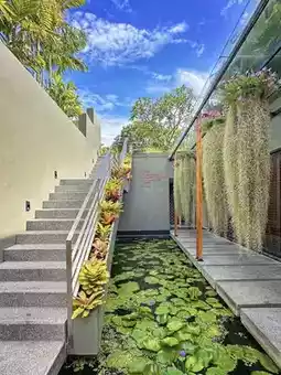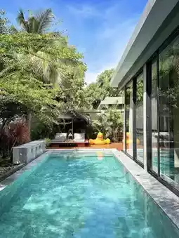 MGallery Hua Hin Hotel V Villa is located on the beachfront of Hua Hin, Thailand. The villa focuses on privacy and modern tropical design, offering a secluded space away from the hustle and bustle for guests seeking tranquility. The villa area is hidden deep within the hotel gardens, surrounded by greenery, maintaining convenient connections to the public areas of the main building while ensuring privacy through the design of independent courtyards and terraces. The architecture features an open layout, primarily using natural wood, rattan furniture, and neutral tones, complemented by floor-to-ceiling glass doors that blur the boundaries between indoor and outdoor spaces, creating a transparent and relaxed vacation atmosphere.
