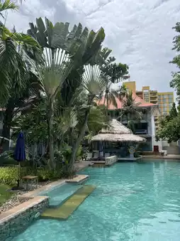 • Pool and Pool Bar: A large outdoor swimming pool with poolside seating and a pool bar offering refreshing drinks, perfect for relaxation.