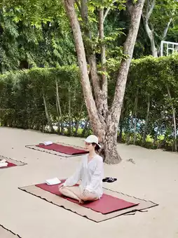 Stay at Hyatt Regency Hua Hin, featuring a private beach, stunning palace-style architecture, and an award-winning spa. Join the morning beach yoga session to stretch and relax in the sunrise and sea breeze for a perfect start!