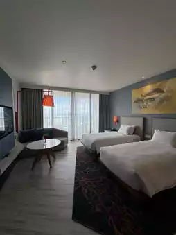 ๐๏ธ Environment/Facilities: The environment is clean and hygienic, featuring a stunning rooftop infinity pool, a sky bar, and a skywalk with breathtaking views. The hotel also offers a kids' playroom, arcade games, and various craft classes to keep children entertained. Conveniently, the water park is located right downstairs, and staying at this hotel includes two days of unlimited access to the water park! However, note that snacks, water, and drinks are not allowed inside the water park.