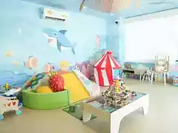 The house has a total of 4 bedrooms, 1 bedroom on the ground floor and 3 bedrooms on the upper floor. Plus, 2 bedrooms, Daddy Shark Room, Mama Shark Room, also have a slide in the bedroom. The bed is soft and comfortable. The baby supplies here are complete, such as a bottle sterilizer, a bathroom, or other equipment. No need to carry anything, it's tiring.