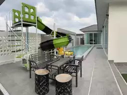 🔥Must go, I tell you. The house has a good atmosphere. Privacy like being at home. Full facilities. Party or come as a family, you can have fun without time limit. Good quality sound system, standard size swimming pool with slide and spa jets, kitchen with all kitchen equipment, and a pool villa room for you to try your skills. ✨New house opening PORSCHE HOUSE HUAHIN