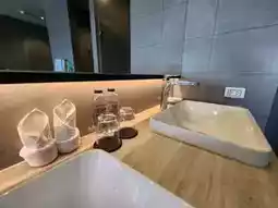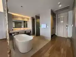 This time, we chose a private pool villa type room on the top floor of the hotel. The room is duplex-style. When you open it, you will see a bathtub, shower area and bathroom. Next to it is a 6-foot bed and a wide balcony with a view of the communal pool and Khao Takiab.