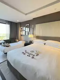 The charm of this place is the swimming pool, which is a water park surrounding the hotel. The swimming pool is very fun, suitable for families with children. They will definitely have fun playing. People play almost all the time from morning to night. It's really fun.