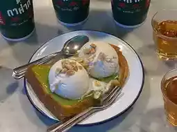 🍞 The menu that we like the most is the pandan custard toast — the custard is very fragrant, soft and smooth, and not too sweet. Eat it with bread and coconut ice cream. The coconut ice cream here is also fragrant and rich, like homemade. It's really good.
