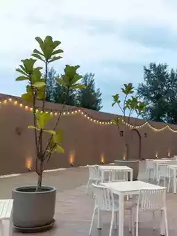 The dinner area is located by the sea, 𝗖𝗮𝗿𝗮𝗽𝗮𝗰𝗲 𝗕𝗲𝗮𝗰𝗵 𝗖𝗹𝘂𝗯, a nice atmosphere to chill by the pool.