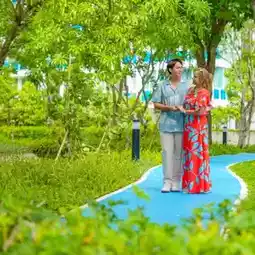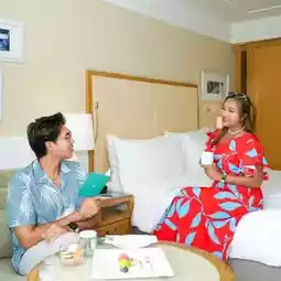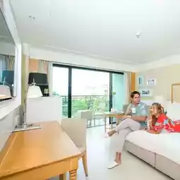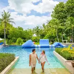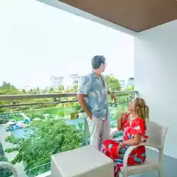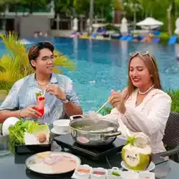 We stayed in a Deluxe Ocean Facing View room. The room was a good size, with a spacious balcony overlooking the pool, lush gardens, and the sea. The amenities were complete and the bed was comfortable. Many people enjoy chilling out at the pool. It's wide, long, and has inflatable toys for you to play with. Don't forget to order a shabu set and enjoy it poolside!💙 For those who love relaxation and activities, there's an outdoor jogging track for fresh air, mini golf, ping pong, and a grassy area for sports. If you're looking for relaxation or activities with delicious food, this is the place for you! We both absolutely love it! Follow us now!