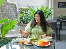 😋 Every restaurant offers a delicious menu, whether it's the stunning Afternoon Tea set for a relaxing afternoon with delicious pastries or the shabu-shabu with spicy salads and various Thai dishes by the pool. The breakfast buffet is extensive and offers a wide selection.