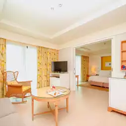 This one-bedroom suite features a clearly separated living room and bedroom.