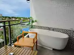 The room is larger than 42 square meters and has a balcony with a relaxing seating area and a Jacuzzi. I really liked it! I could soak in it for a long time. The room was clean, spacious, airy, and very comfortable. There was even a stuffed whale for us to cuddle and play with. All amenities were available, but some were not provided in the room. Additional amenities are available upon request, such as toothpaste, toothbrush, comb, and razor.