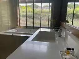✨ Today, I stayed at The Spirit Hua Hin and was amazed the moment I opened the door. It’s a grand villa, beautifully and magnificently designed. There’s a private pool right in front of the house with lush green views. They welcomed us with a drink and a charming welcome set, which was surprisingly high-quality. The bathroom is spacious, featuring a tub where you can relax while enjoying the view.