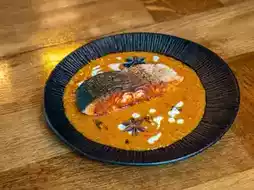 Salmon Satay: Grilled fish marinated in spices, crispy skin, and a rich peanut sauce.