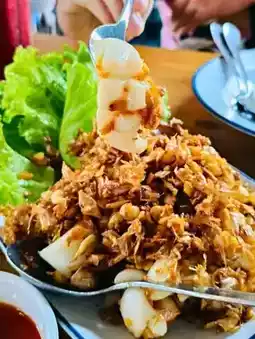 💯 Go Mak is another popular seafood restaurant that you shouldn't miss when visiting Hua Hin. Located in Soi Hua Hin 51, it's easily accessible. The restaurant's simple yet clean decor and friendly atmosphere make it ideal for families or groups of friends. The menu offers a wide selection of dishes, especially the fresh seafood dishes, which look like they just landed on the boat. Enjoy the zesty steamed squid with lime, the fragrant scallops baked in garlic butter, and the firm, sweet sea crab stir-fried in black pepper. This is sure to please seafood lovers.