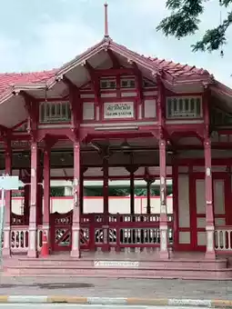 Hua Hin Railway Station is a historic landmark in Hua Hin. The building is a beautiful blend of Thai and Western architecture, with a vibrant yellow-cream and red accent. It's truly striking, especially the "Phra Mongkutklao Pavilion," a popular photo spot. Everyone who visits here must take a photo.