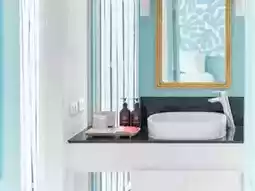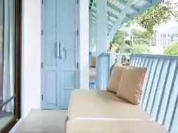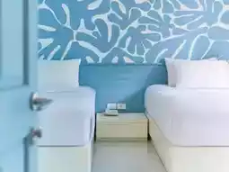 ภายในโรงแรมตกแต่งสไตล์เมดิเตอร์เรเนียน คุมโทนสีฟ้า-ขาวสดใส ที่กลมกลืนไปกับสวนต้นไม้สไตล์ทรอปิคอล ให้บรรยากาศร่มรื่น เหมาะกับการมาพักผ่อนแบบสุดๆ