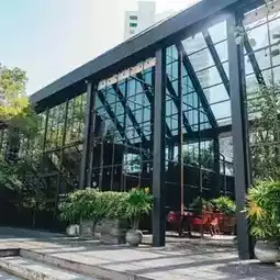 Air Space Hua Hin is a restaurant and cafe with a striking design. It's like an aviation theme infused into every corner. Upon entering, you feel like you're in an airplane hangar. The high-rise space is lined with natural light, offering plenty of beautiful photo spots both indoors and outdoors.
